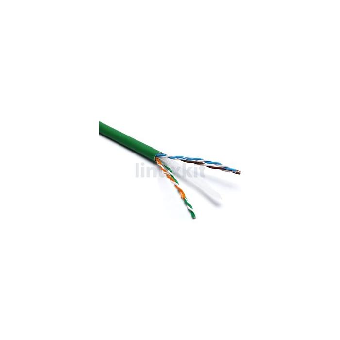 Category 6 Cable in Green is manufactured and tested to the TIA/EIA 568?B.2?1, EN50173?1 and ISO/ IEC 11801 Category 6 specifications. This cable consists of 8 colour coded 24 AWG polyethylene insulated conductors. These are twisted together to form 4 pairs with varying lay lengths. These pairs are then formed around a central ‘X’ shaped polyethylene filler. This filler assists in maintaining and enhancing the cable's performance.