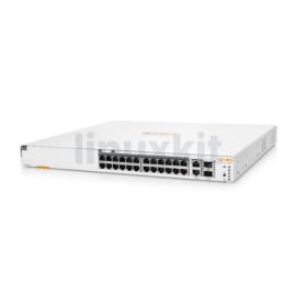 The HPE Networking Instant On 1960 (JL806A) is a smart-managed 24-port ethernet switch with PoE. It features 24 x RJ-45 10/100/1000 ports, 2 x SFP+ 10GbE ports and 2 x 10GBASE-T ports.