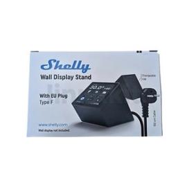 The Shelly Wall Display Stand in black is a desktop wall stand designed for use with the Shelly Wall Display, a touch-screen smart home control panel offering comprehensive control and oversight across an entire Shelly network.