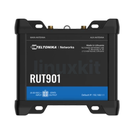 RUT901 Teltonika 4G CAT4 & WiFi Router 4G/LTE (CAT 4), 3G, 2G WiFi 4 (802.11b/g/n) 2.4GHz 4 x 10/100 Ethernet ports Antennas & Connectors: 2 x SMA for LTE/4G, 2 x RP-SMA for WiFi Dual SIM card slots with auto failover Manufactured in Europe Remote Management System available - click here for free demo Authorised Distributor » Price("4G-RUT901") Stock("4G-RUT901") 4G-RUT901 RUT901 Teltonika Router KitPrice(["4G-RUT901","TL-ROUTER_12MNTH_LCNS"]); KitStatus(["4G-RUT901","TL-ROUTER_12MNTH_LCNS"]); 4G-RUT901 & 12 Months Remote Management System Credits In the 'extra information' section on the check out page, please provide us with an Admin email address. Teltonika RMS Info