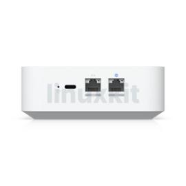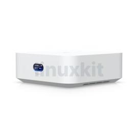 The Ubiquiti UniFi Express 7 is a compact 10G router gateway, featuring embedded tri-band WiFi 7 and compatibility with the full UniFi suite. The UX7 features a 10G RJ45 WAN port for high-throughput connectivity, and can deliver an aggregate 10.6 Gbps WiFi throughput across an area of 160 m² (1,750 ft²) for up to 300 simultaneously connected devices. This gateway also provides a management interface for up to 30 managed UniFi devices like IP cameras, access points and doorbells, for a streamlined UniFi installation.