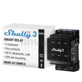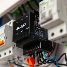 The Shelly Pro 3 is a LAN, WiFi and Bluetooth smart switch with 3 separate channels, engineered to be mounted on the DIN rail in the breaker box. It can automate heating/cooling or lighting systems in any space and includes robust safety features to protect against overvoltage or overheating.