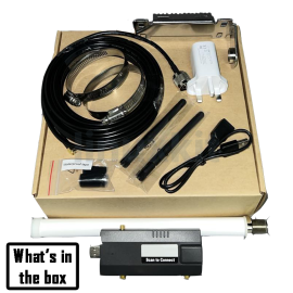 - What's in the Box: x1 Outdoor Antenna x1 Indoor Broadcasting Device x2 Indoor Antennas x1 8m outdoor RF cable x1 Waterproof tape x1 UK 3-pin power supply x1 USB male to female cable x1 Pole mount Bracket & x2 Clips (bracket can be used to mount via Suction cups - suction cups sold separately)