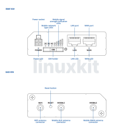 - Antenna: 2 x SMA for LTE, 1 x RP-SMA for WiFi antenna connectors