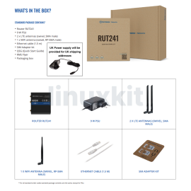 - SIM: 1 x SIM slot (Mini SIM – 2FF), eSIM RUT241 Router also has eConsumer type eSIM