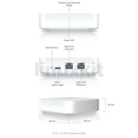 The Ubiquiti UXG-Lite is a UniFi security gateway for use with a Cloud Key, self-hosted, or cloud-hosted UniFi network, including a full suite of advanced routing and security features.