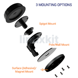 - What's in the box: Antenna: A-PUCK-0007-V2-01 Mounting Bracket: Ø20 Threaded Spigots (Up to 60mm clamping thickness), Adhesive Surface Mounting & Magnetic Mount. Adapters: 2x RP-SMA(M) To SMA (F)