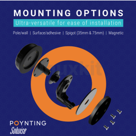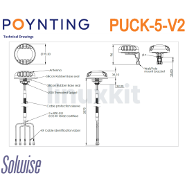 - What's in the box: Antenna: A-PUCK-0005-V2-01 Mounting: • Threaded Spigots (Up to 60mm clamping thickness). • Pole / Wall Mounting Bracket. • Adhesive Surface Mount. • Magnetic Base Mount. Adapters: x2 RP-SMA (M) To SMA (F).