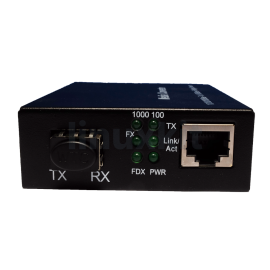 • Media converter with 1Gbps ethernet port and a single SFP port for a choice of optical fibre data transceivers