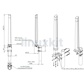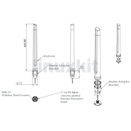 - Box Contents: 1 x antenna 1 x Mounting bracket - Marine Adapter (1'' -14 TPI) & L-bracket (Ø30-50mm Pole)