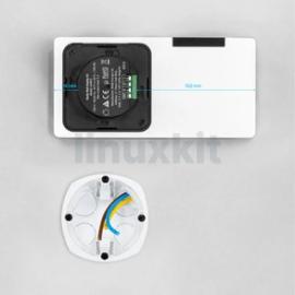 The Shelly Wall Display X2 in silver is a dual-gang touch-screen wall display, designed to offer a single point of contact for touch-screen control across an entire Shelly network. Representing the second generation of Shelly Wall Displays, the Wall Display X2 is two-gang in contrast with the single-gang Wall Display Gen1, and can interface with the wider Shelly ecosystem over Bluetooth and WiFi to provide a centralised control point for an entire smart building.