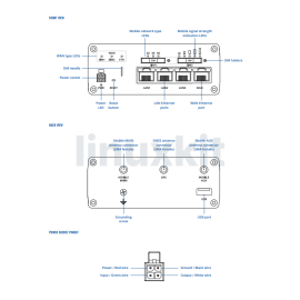 - Antennas: 2 x SMA for Mobile, 1 x SMA for GNSS