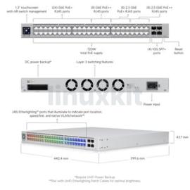 The USW-Pro-Max-48-PoE is an enterprise level Layer 3 Etherlighting switch, designed for high-power PoE++ output. With illuminating Etherlighting ports to indicate port speed/link, location, and native VLAN/network, connected devices can be monitored at a glance, and the USW Pro Max is also equipped with a 1.3 inch touchscreen display for painless troubleshooting.